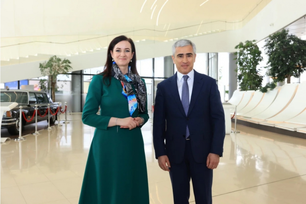 "Musiqi alətləri: Birlik və müxtəliflik" sərgisi ilə tanışlıqdan sonra İnqa Ruqiniene Azərbaycan xalçalarından ibarət "İlmələrin rəqsi" sərgisinə baxış keçirib.