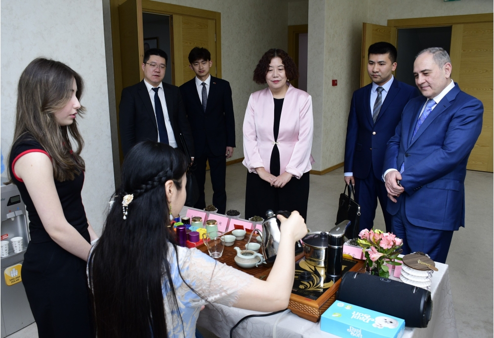 Sonra Çin mədəniyyətinin ayrılmaz hissəsi olan qədim çay ənənəsi və xəttatlıq sənəti nümayiş olunub.