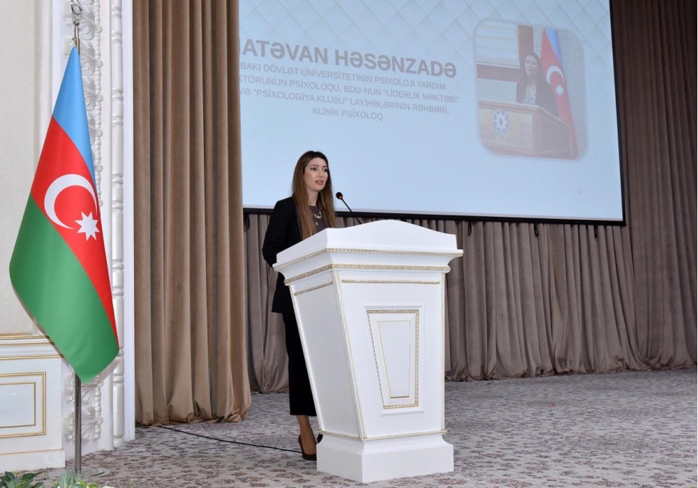 Tədbirdə Bakı Dövlət Universitetinin Psixoloji Yardım Sektorunun psixoloqu, BDU-nun “Liderlik məktəbi” və “Psixologiya klubu” layihələrinin rəhbəri, Klinik psixoloq Natəvan Həsənzadə də maraqlı təqdimatla çıxış edib. O, çıxışı zamanı abituriyentlərin imtahan öncəsi və imtahan dövründə yaşadıqları stress, həyəcan və emosional gərginlik halları barədə danışıb. abituriyentlər öz üzərlərində təzyiq yaratmamalı, əksinə, hazırlıq prosesinə daha sakit və planlı yanaşmalıdırlar. O qeyd edib ki, kiçik fasilələrlə işləmək, nəfəs və rahatlama texnikalarından istifadə etmək, həmçinin gündəlik rejimi düzgün qurmaq imtahan performansını əhəmiyyətli dərəcədə yaxşılaşdırır.
