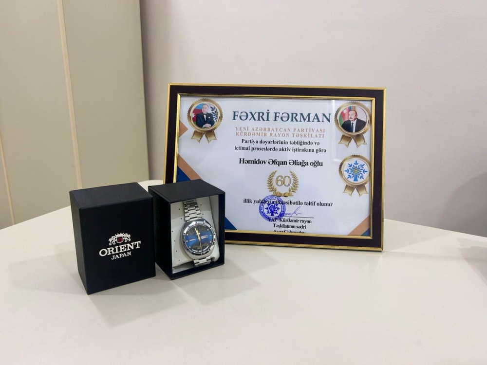 Görüşün sonunda Əfqan Həmidova partiya dəyərlərinin təbliğində və ictimai proseslərdə aktiv iştirakına  görə və 60 illik yubileyi münasibətilə Fəxri Fərman və xatirə hədiyyəsi təqdim edilmişdir.