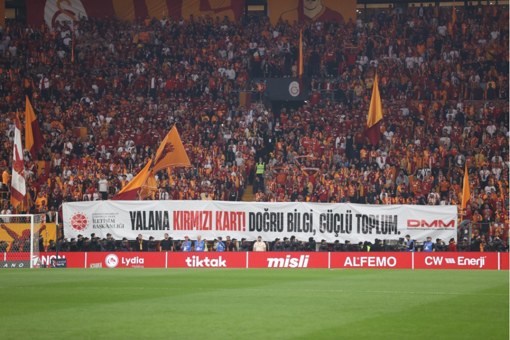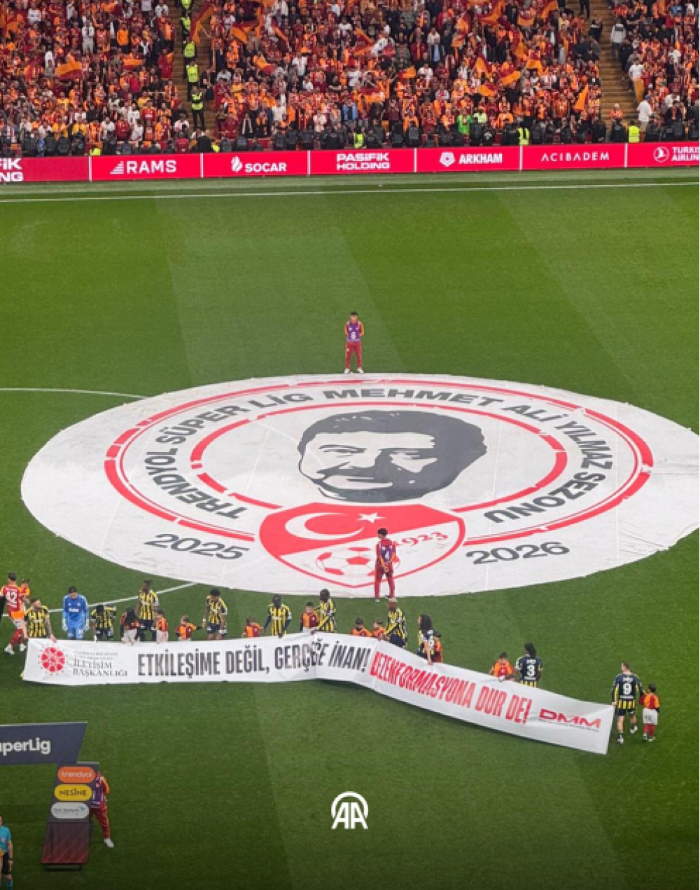 Türkiyə futbolunun ən böyük qarşılaşmalarından olan “Qalatasaray–Fənərbağça” derbisi bu dəfə yalnız meydandakı rəqabətlə deyil, həm də ictimai maarifləndirmə baxımından mühüm addımla yadda qalıb. Belə ki, Türkiyə Prezidenti Administrasiyasının İctimaiyyətlə Əlaqələr Departamentinin dezinformasiya ilə mübarizə şöbəsinə dəstək məqsədilə hər iki komandanın futbolçuları meydana xüsusi pankartlarla çıxaraq dezinformasiyanın ictimaiyyətə mənfi təsirlərinə diqqət çəkiblər.