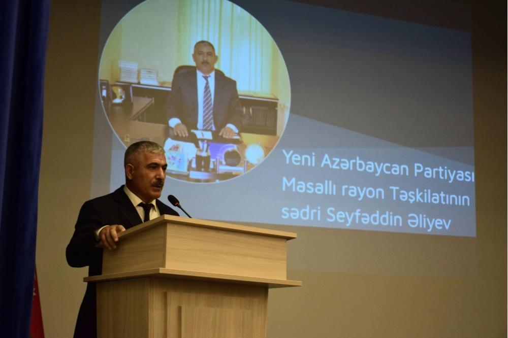 Yeni Azərbaycan Partiyası Masallı rayon təşkilatının sədri Seyfəddin Əliyev çıxış edərək bildirmişdir ki, Müasir Azərbaycan dövləti Ümummilli Liderin ən böyük mirası olaraq Onun uzaqgörən ideyaları işığında addım-addım güclənir və tərəqqi edir. Bu gün ölkəmiz qlobal arenada öz nüfuzunu davamlı şəkildə artıraraq, Cənubi Qafqazın lider dövləti kimi özünəməxsus inkişaf modelini bütün dünyaya sübut edir. Heydər Əliyev xəttinin uğurlu davamı olan bu nailiyyətlər, xalqımızın dahi şəxsiyyətə olan sarsılmaz bağlılığının və sonsuz ehtiramının bariz nümunəsidir. Ulu Öndərin 103-cü ildönümünün ölkə miqyasında böyük coşğu və yüksək ruh yüksəkliyi ilə qeyd edilməsi də məhz bu tükənməz sevginin təzahürüdür.